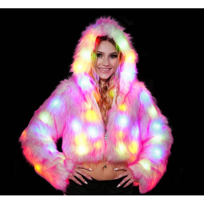 Step into the spotlight with our mesmerizing LED faux fur coat! Designed to make you stand out, this coat combines luxurious faux fur with captivating LED lights that create a stunning visual spectacle. Whether you're hitting the town, attending a festival, or simply want to make a statement, our LED faux fur coat is your perfect companion. Be the center of attention and radiate style with this unique and unforgettable piece. Elevate your fashion game – shop our LED faux fur coat now and light up every moment!